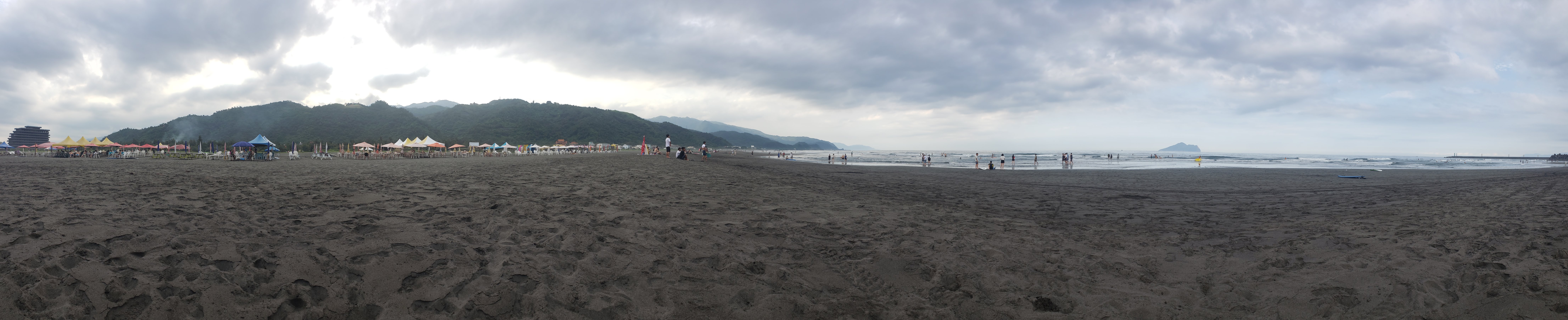 After we settled into our new place a bit, we decided to head to the water to cool down. The average weather up here is in the upper 80s with 90% humidity, so a dip was much needed. Toucheng is just a short train ride away from a collection of ocean-side towns lining the coast of Yilan County, and today we headed straight to Wai’ao, a cute little village with a sweeping expanse of black sand beach.