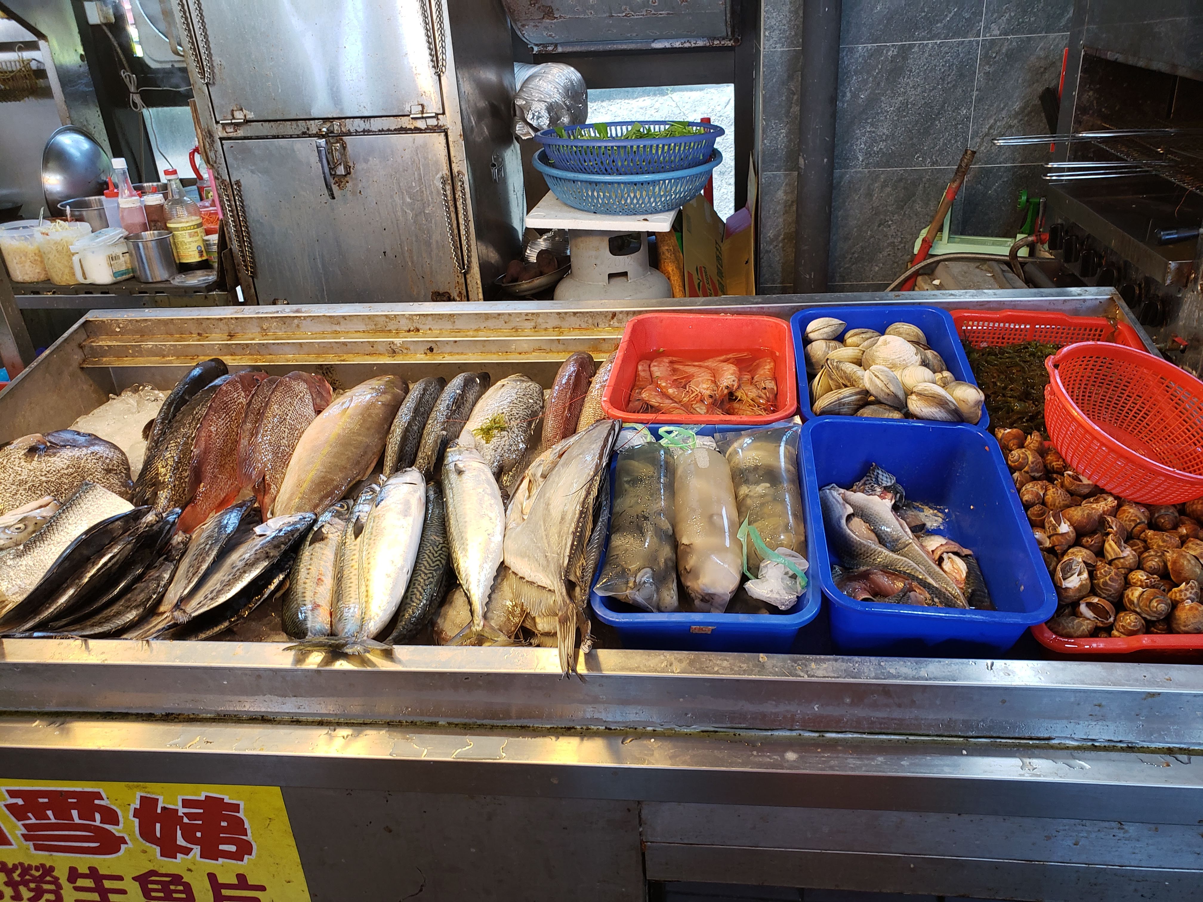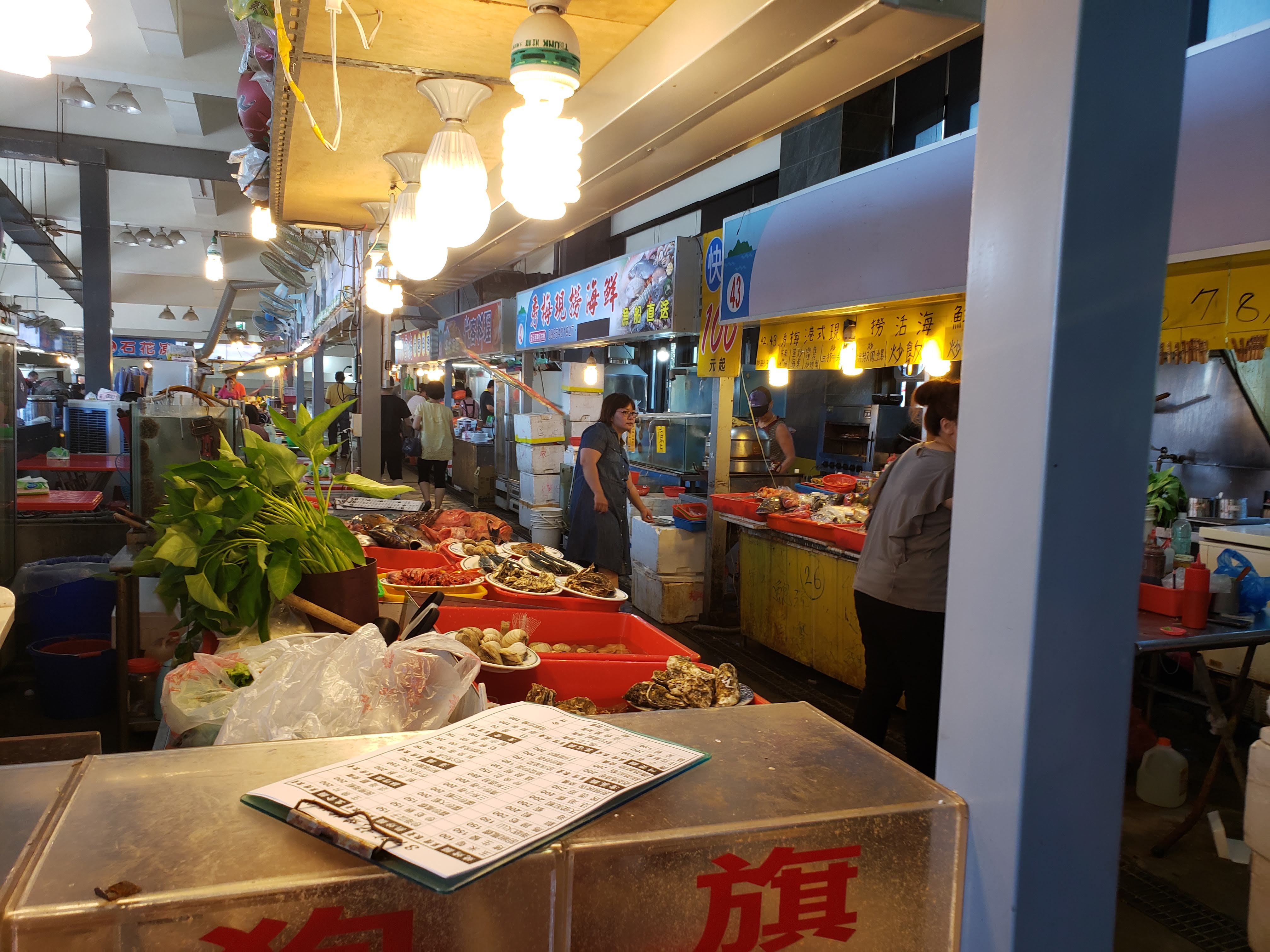Being pescatarians, we’ve sometimes run into trouble avoiding meat when we go out for meals here in Taiwan. The country has a large Buddhist population, so it’s not impossible to find vegetarian options, but our lack of skill in Mandarin can make it tough to know for sure what we’re ordering, even when we try to awkwardly inform our servers “Wǒ bù chī ròu!” Yulun and Ren-Hong have been encouraging us to explore Daxi, and a seafood paradise like the fishport seemed like the perfect place for us to get a delicious, pescatarian lunch. And boy were we right!