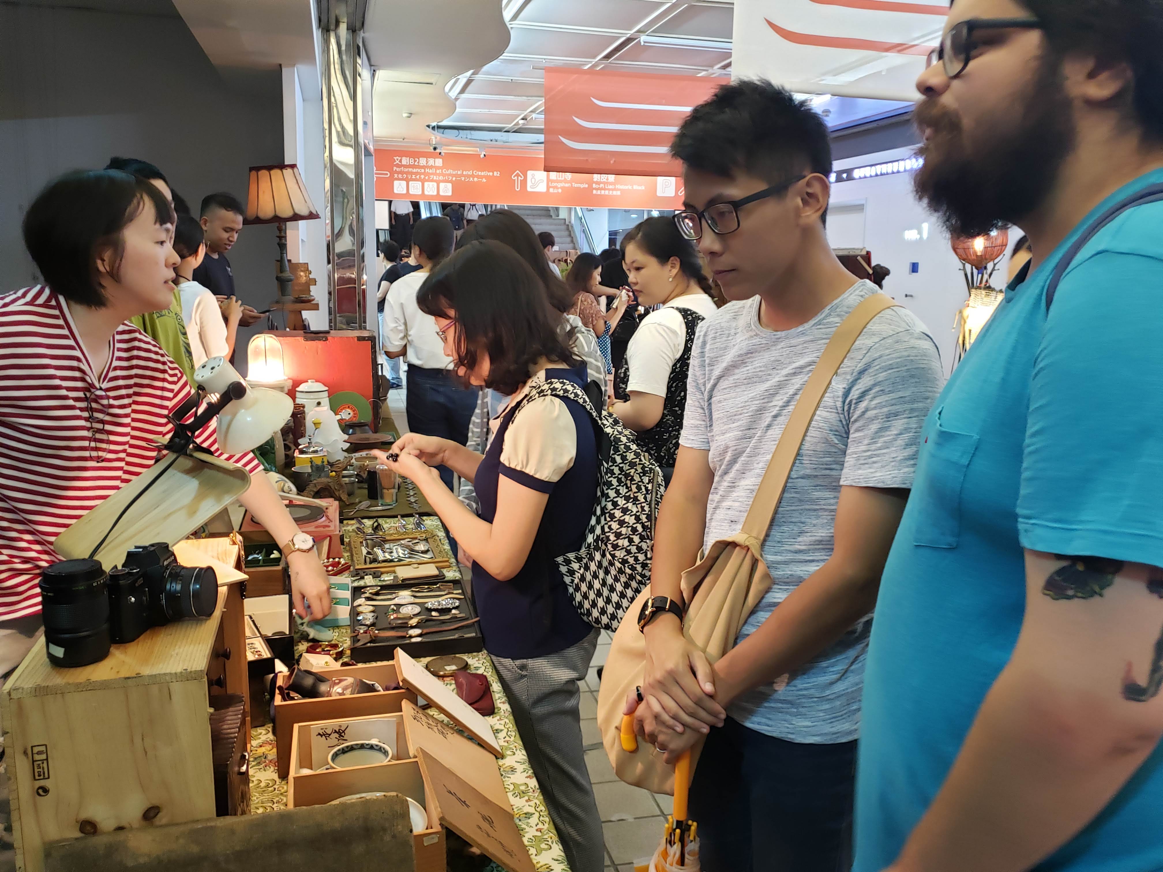 Afterwards, we headed to a popup flea market near Longshan Temple. We were able to see the temple up close last time we were in Taipei, but this time we stuck to the floor just underneath that had been taken over by antiques, games, clothes, and cultural education stations for the weekend. We mostly just walked circles around market, browsing and enjoying one another’s company, but we did end up buying a small board game and a vintage Taiwanese flag to decorate our room with.