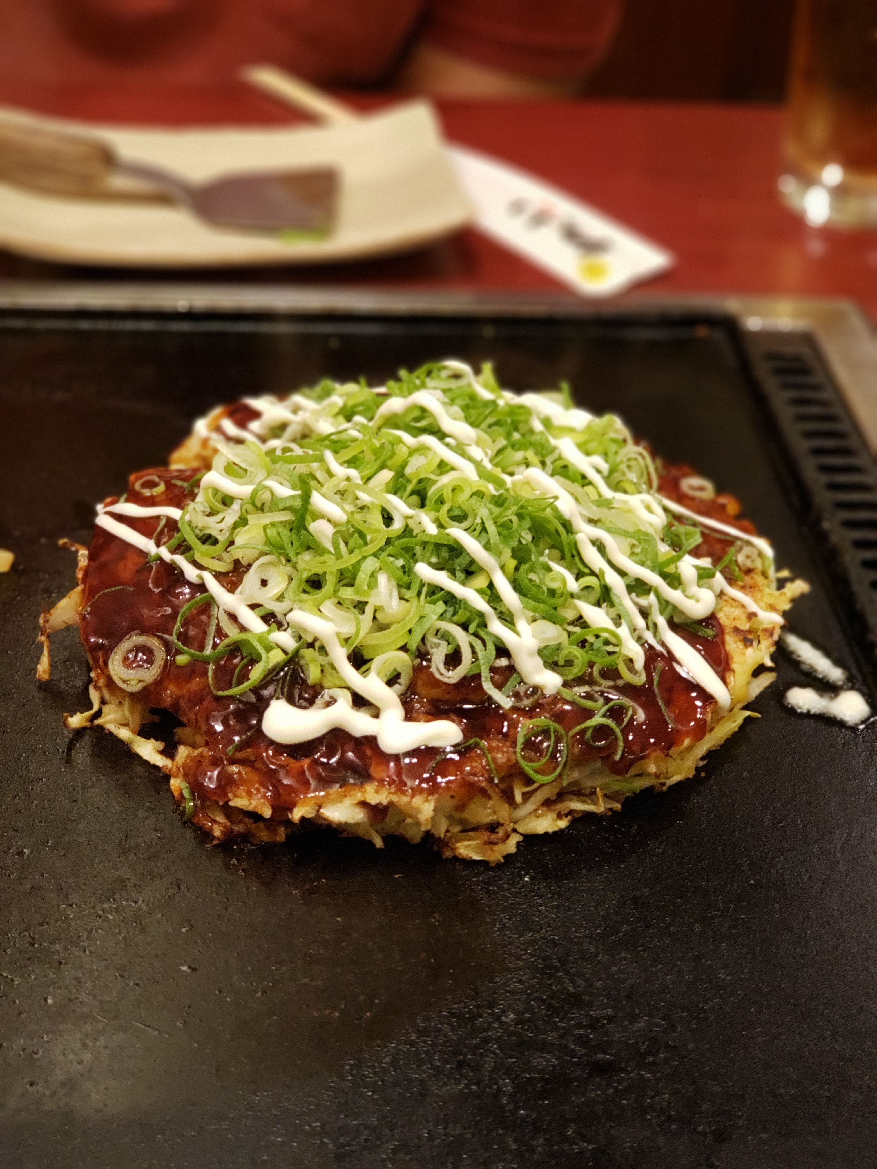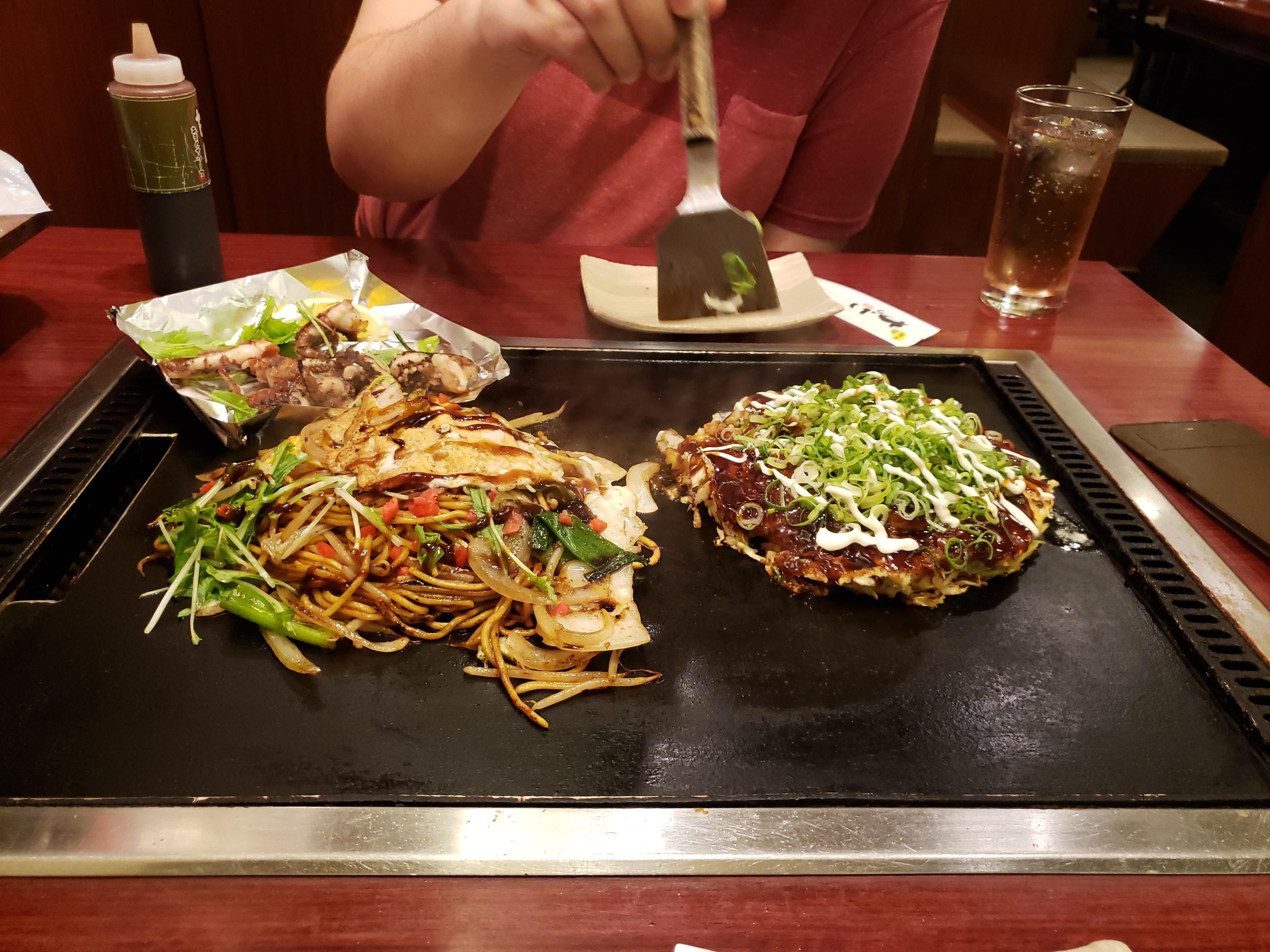 This incredible dish is a savory pancake served teppanyaki-style. Diners are given their own batter and fixings, and you cook the pancake yourself right at your table. For dinner we headed to Nishiki Warai, a late-night restaurant known for being the best place in town to get okonomiyaki. We can see why the dish is so popular! It was as delicious as it was fun to eat.