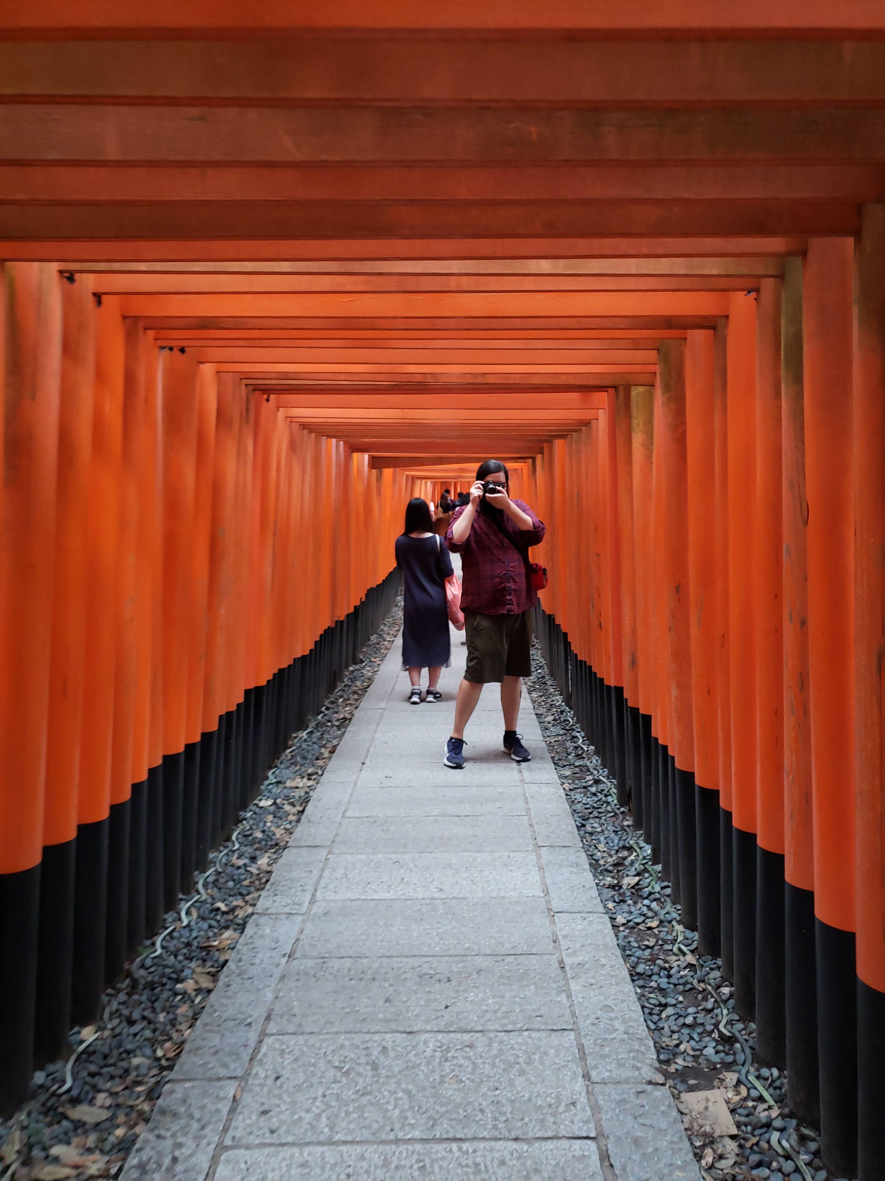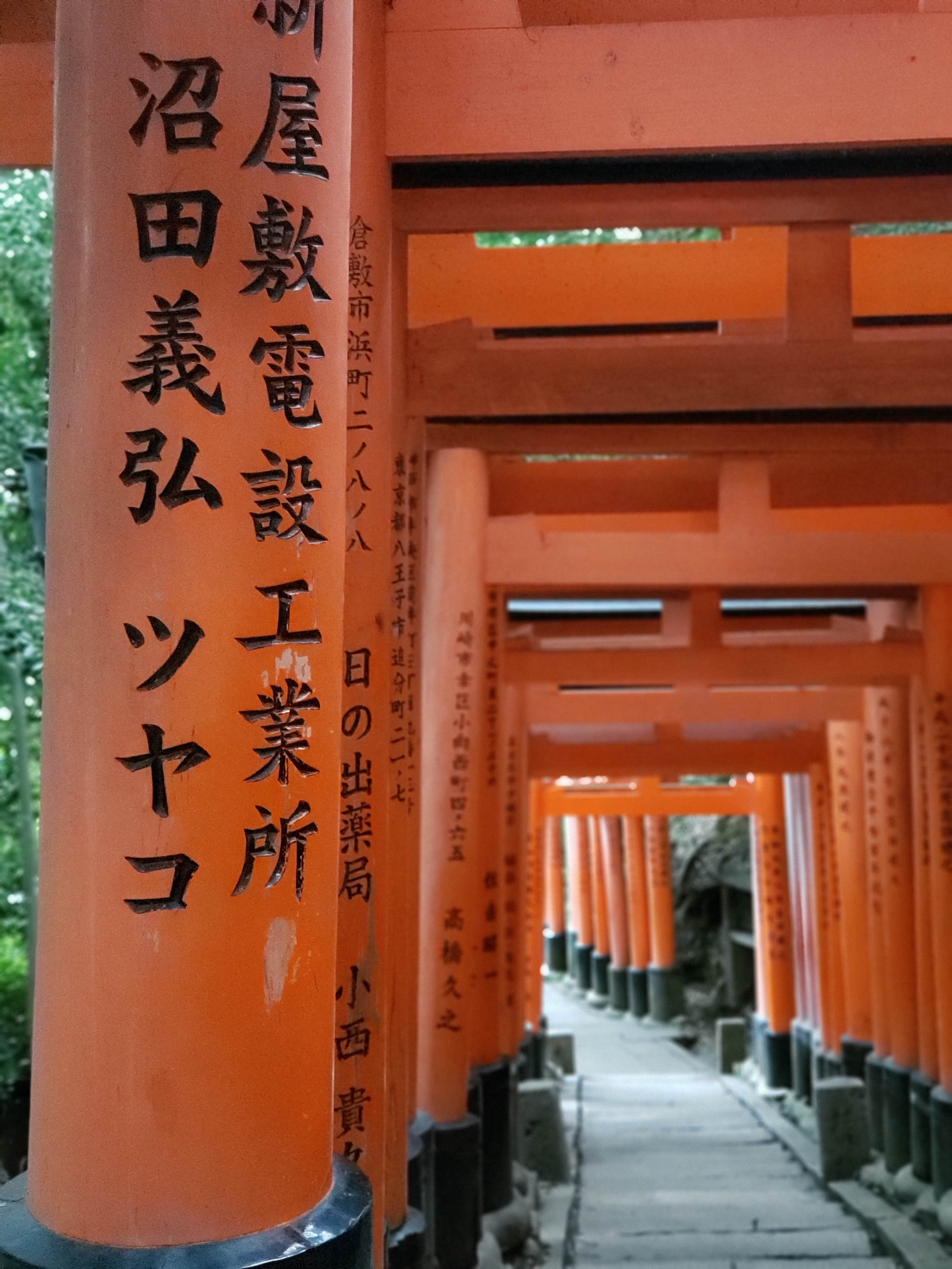 The hike starts out slow, a level path enshrouded by closely clustered gates, but if you trek further, you’re led through deep forest, up steep steps and past dozens of smaller shrines set into the trees. It’s an intimidating hike once things get steeper, but we decided that we’d made it this far, might as well commit and make it to the top!