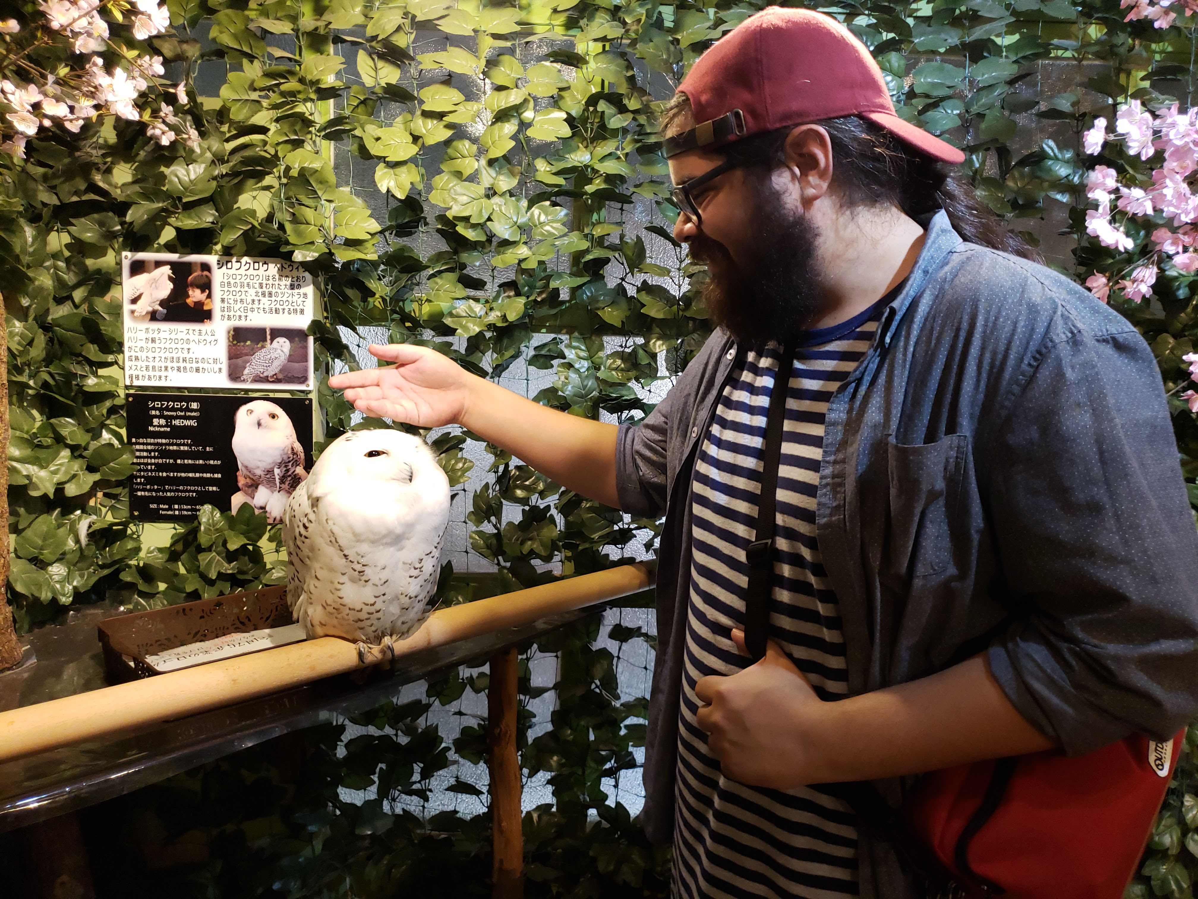 Going to an owl café is one of those dearly-held, distant dreams I’ve had for years that I never thought would actually come true. But as we were heading back to our room to pack up and prepare for the next day’s journey, we noticed an owl café less than two blocks from the hotel. So, the next morning we bolted down some breakfast and headed to the café, where we met (and pet!) a whole room full of these beauties.